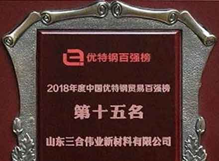 三合偉業獲評2018年度中國優特鋼貿易百強榜 第十五名