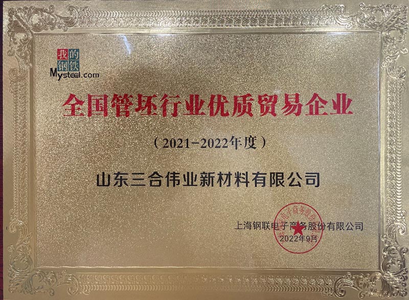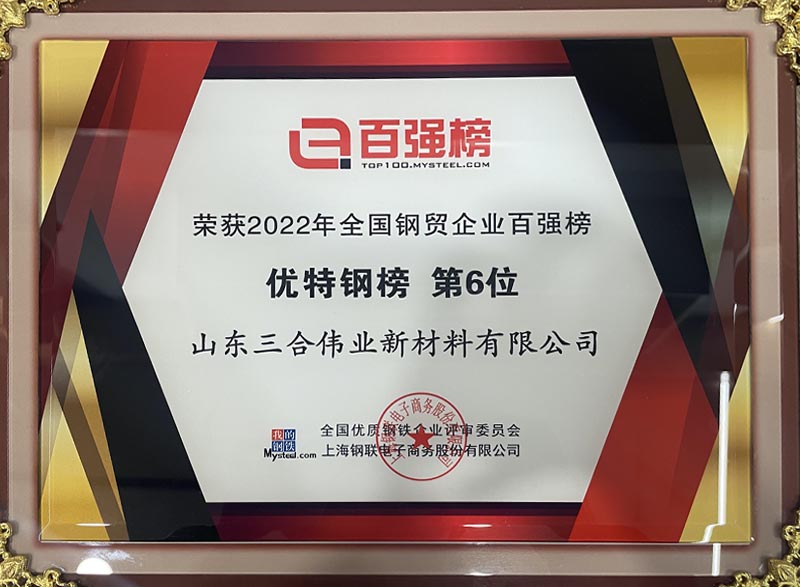 山東三合偉業新材料有限公司獲評2022年全國鋼貿企業百強榜
