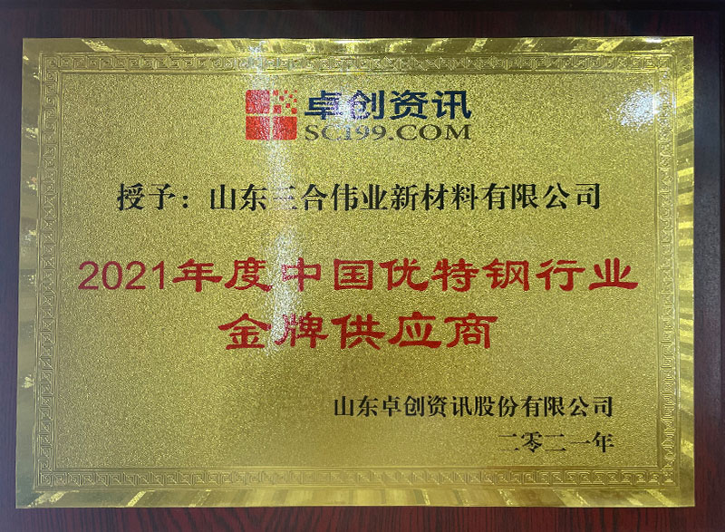公司獲評中國優特鋼行業金牌供應商